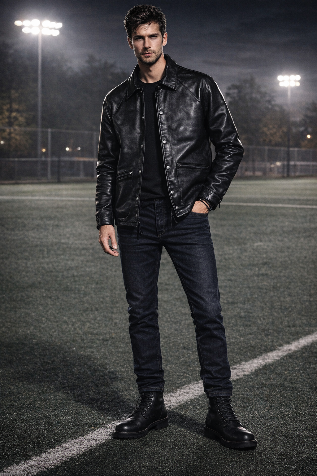 Designed to your exact measurements, every stitch is tailored for a perfect fit — making it a true one-of-one piece, crafted just for you. The jacket’s clean silhouette, sharp collar, and vintage-inspired finish balance rugged durability with understated elegance.